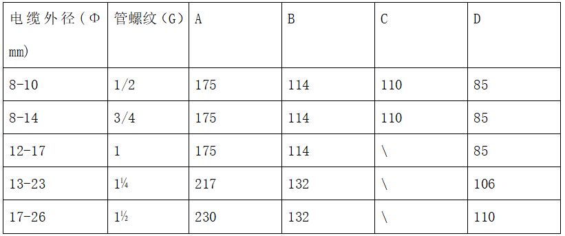1、BAH-3/4BB含:BAH隔型接線盒,管螺紋為G3/4”直二通平蓋。